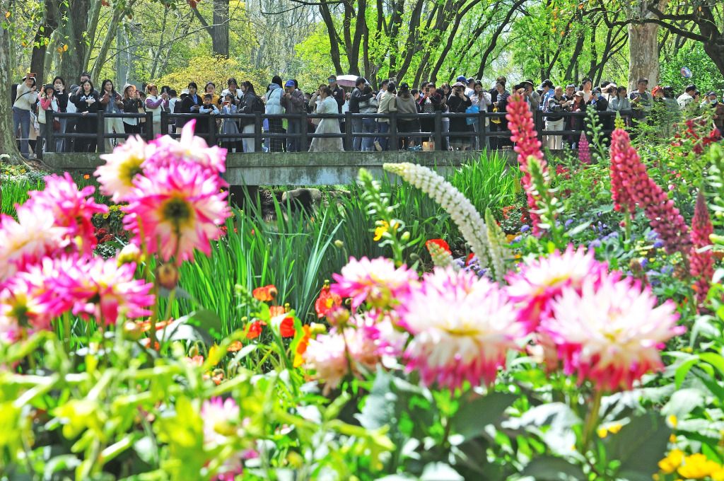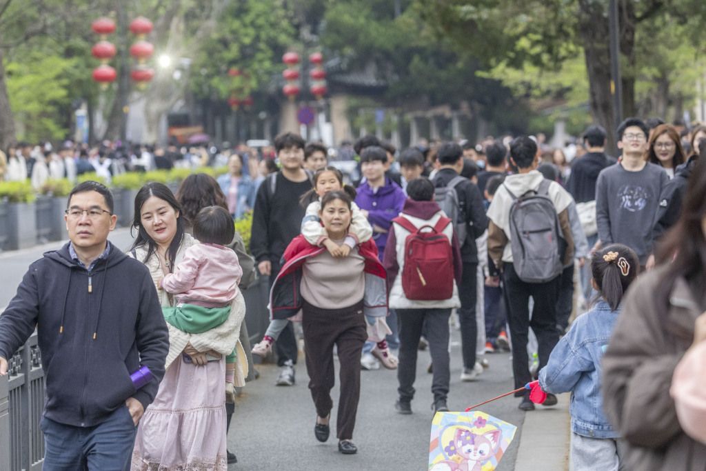 2024年4月5日,上海,市民游客在共青森林公园踏青赏花,乐享假期。
