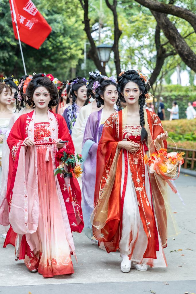 2024年4月5日,深圳市世界之窗,市民参加汉服节活动。