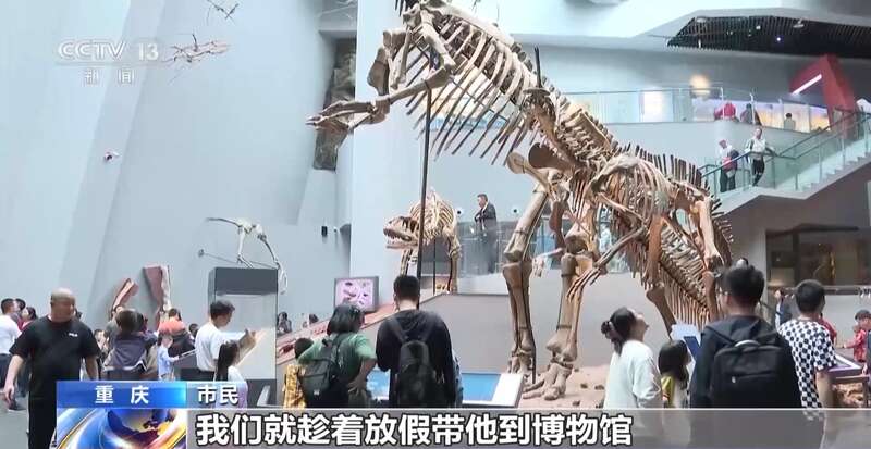 重庆市民:因为我们家孩子特别喜欢恐龙嘛,我们就趁着放假带他到博物馆来看一下恐龙展览,丰富一下他的知识。