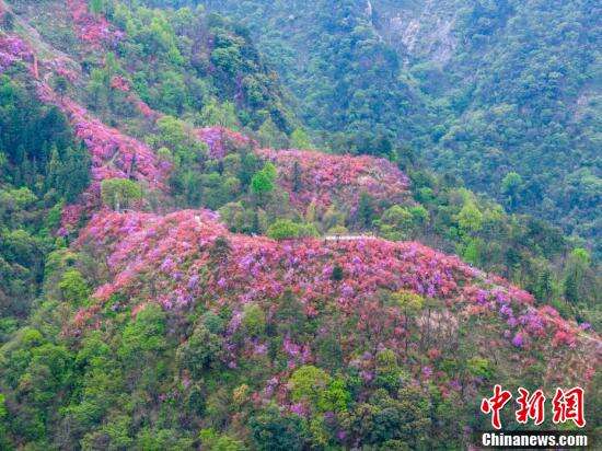 近日,位于大别山腹地的安徽省安庆市岳西县河图镇天峡千亩野生杜鹃花陆续开放,岭上开遍映山红。