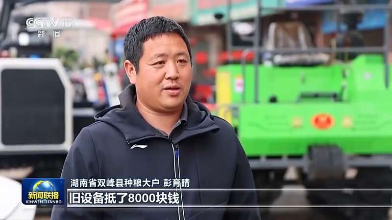 湖南省双峰县种粮大户 彭育晴:旧设备抵了8000块钱,另外补了5000元,新设备性能好、作业稳定,每天可以多打二三十亩地。
