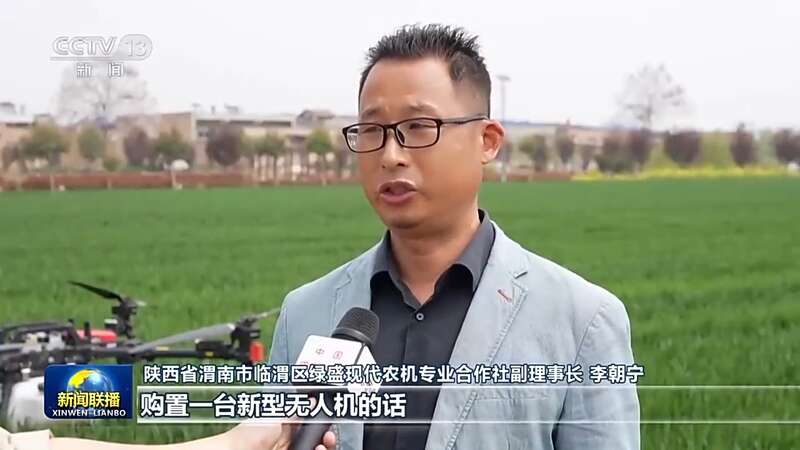 陕西省渭南市临渭区绿盛现代农机专业合作社副理事长 李朝宁:购置一台新型无人机的话,能补助五六千块钱,作业效率特别高。