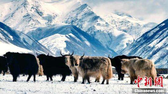 牦牛在祁连山草原觅食。