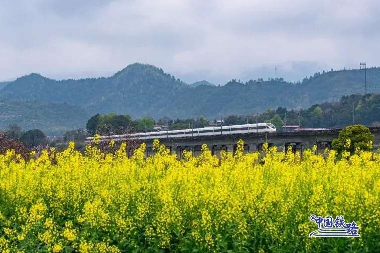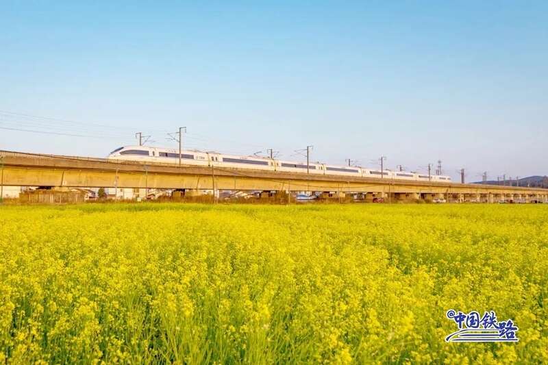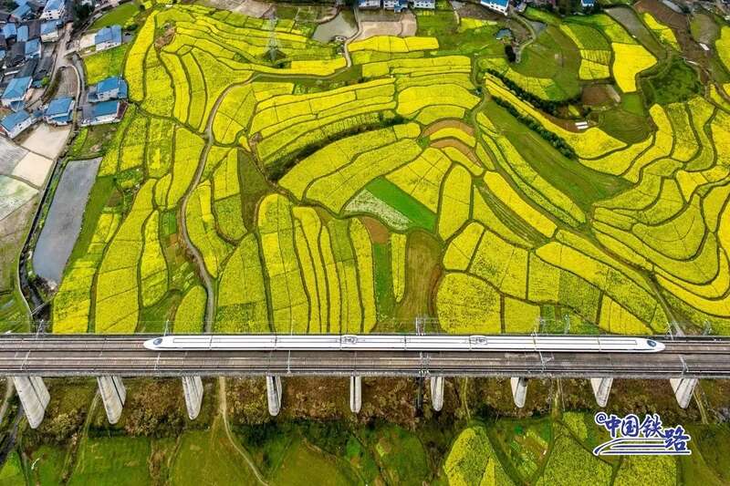 列车进入湖南怀化地区时,千万不要低头玩手机!一望无垠的油菜花田会让你沉醉其中。