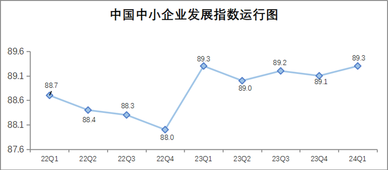 中国中小企业协会今天(9日)发布,一季度中国中小企业发展指数为89.3,比去年四季度上升0.2点。