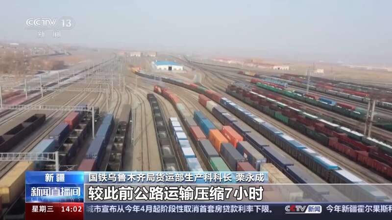 国铁乌鲁木齐局货运部生产科科长 栗永成:新疆铁路开行的X387次西安至乌鲁木齐全国首趟快递电商“公转铁”集装箱班列,进一步优化运行线路,全程运输时间为38小时,较此前公路运输压缩7小时,货物运输价格下降57%,助力新疆加入“包邮区”。