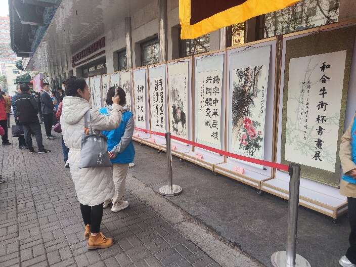 此外,牛街还展出了18幅画作,既有与少数民族有关的水墨画《天山风情》,也有名家书法作品《天行健,君子以自强不息》《只争朝夕,不负韶华》等,吸引各族群众驻足欣赏。
