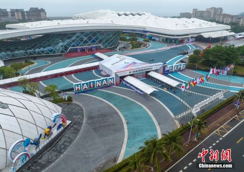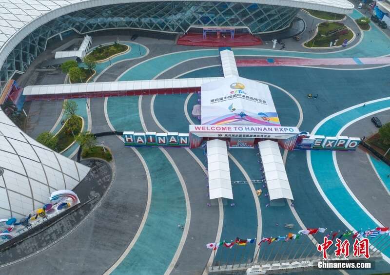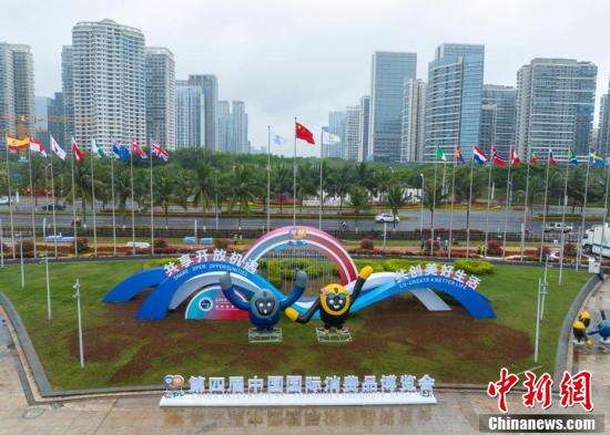 第四届中国国际消费品博览会户外主题景观。(无人机照片)