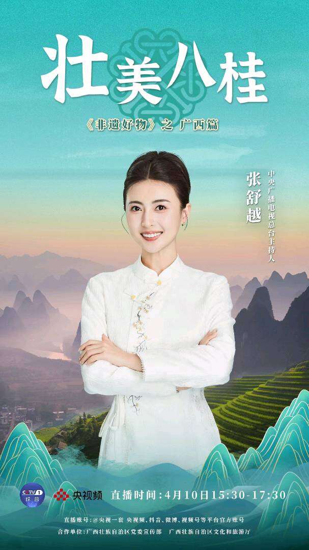 中国青年报客户端讯(中青报•中青网记者吴晓东)在“广西三月三”来临之际,融媒体直播节目《非遗好物》之广西篇,4月10日在中央广播电视总台央视综合频道(CCTV-1)播出,总台主持人张舒越与好物推荐官沈鹏鸣一起,通过一场漫游式“赶圩”直播,带领观众体验“广西三月三”多项非遗项目,为盛大节日预热。