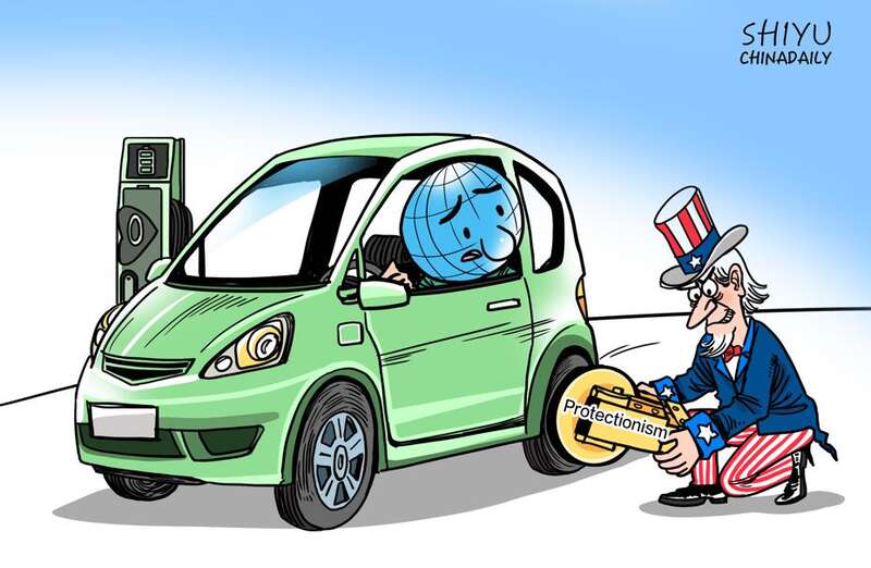 贸易保护主义阻碍世界新能源汽车创新发展。(来源:中国日报 石宇 英文《中国日报》2024年4月12日8版)
