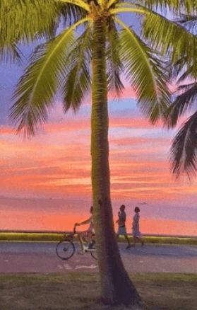 上午,人们坐在路边摇着蒲扇喝椰汁,小店坐满拉家常的人;午后时光,很多店家会趴在收银台后小憩;下班后,散步在海边,看醉人的夕阳、翻腾的海浪,慢悠悠享受生活。