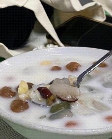 清补凉是海口的多巴胺之王,是当地人专属的神仙糖水。新鲜的椰汁打底,加入红豆、绿豆、薏米、花生、银耳、莲子、西瓜等多种配料,轻轻舀一勺,在口中迸发出丰富的甜,椰子水清爽解渴,椰奶多了奶香的浓郁,冰沙款更加解暑。