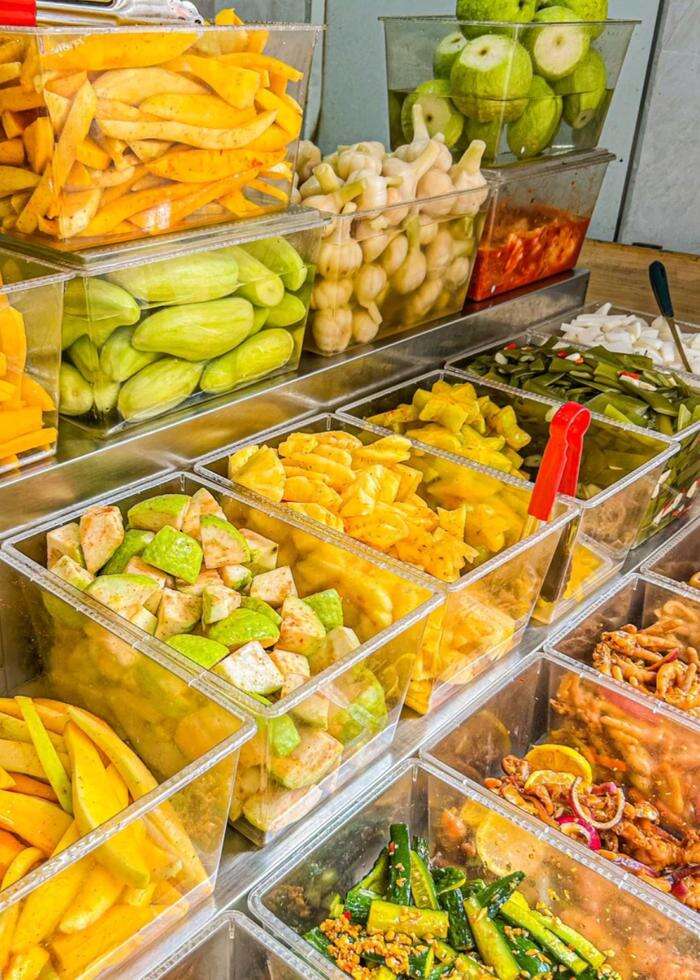 在海口,削了皮的新鲜水果,蘸上辣椒盐,味觉层次瞬间丰富,令人收获水果变“凉菜”的奇妙体验,其中芒果就是一个不错的选择。