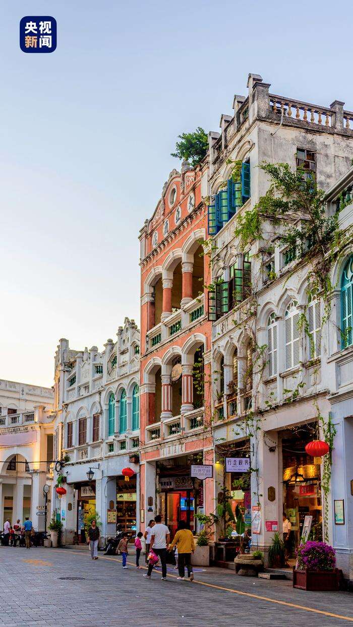 骑楼外表有精致的雕花和洋派装饰,中西合璧,色彩多样,在阳光照耀下格外吸引眼球。