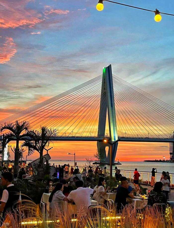 △海口世纪大桥,全长2663米,将海甸岛与主城区相连接,在广阔的大海之上宛如“气贯长虹”。