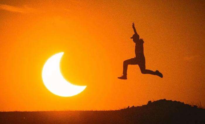 他构思创作的“在日食中奔跑”的照片