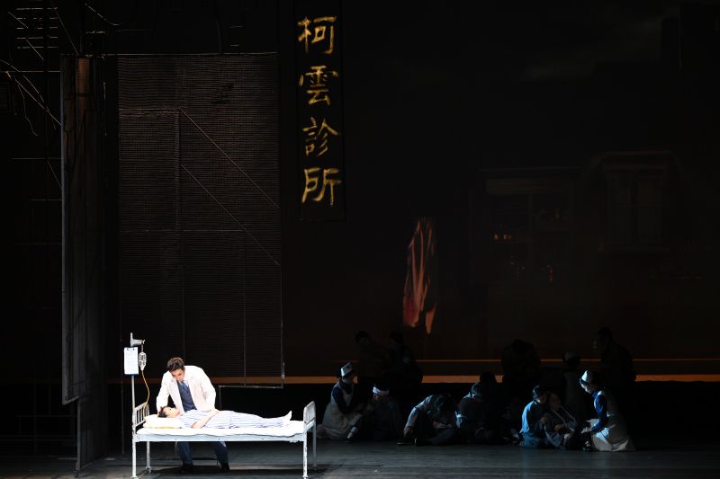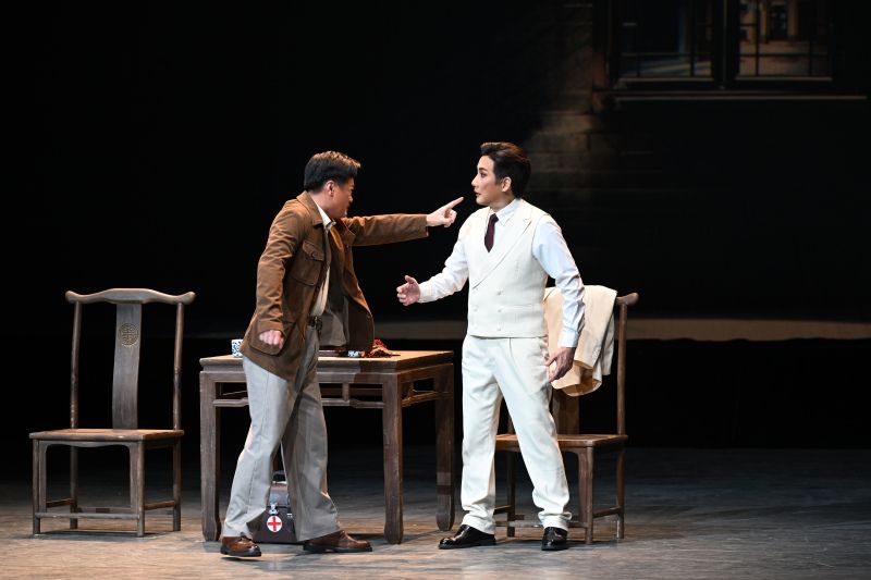 2024年4月16日,北京,首部由珠海和澳门合作创排、以二十世纪三四十年代“红色医生”柯麟潜伏澳门的真实故事改编的原创现代粤剧《无声的功勋》在北京保利剧院上演。该剧讲述了代号“中共特科10号”的柯云医生奉命潜伏澳门、团结澳门进步人士的故事,通过还原其原型人物柯麟在战乱中为贫苦民众施粥赠药、争取华人医生手术权、兴办医院学校等真实事件,展现中国共产党人在与敌人殊死较量中始终不变的坚定隐忍、心系人民、济危救难、无私无畏精神。图为演出现场。 中新社记者 田雨昊 摄