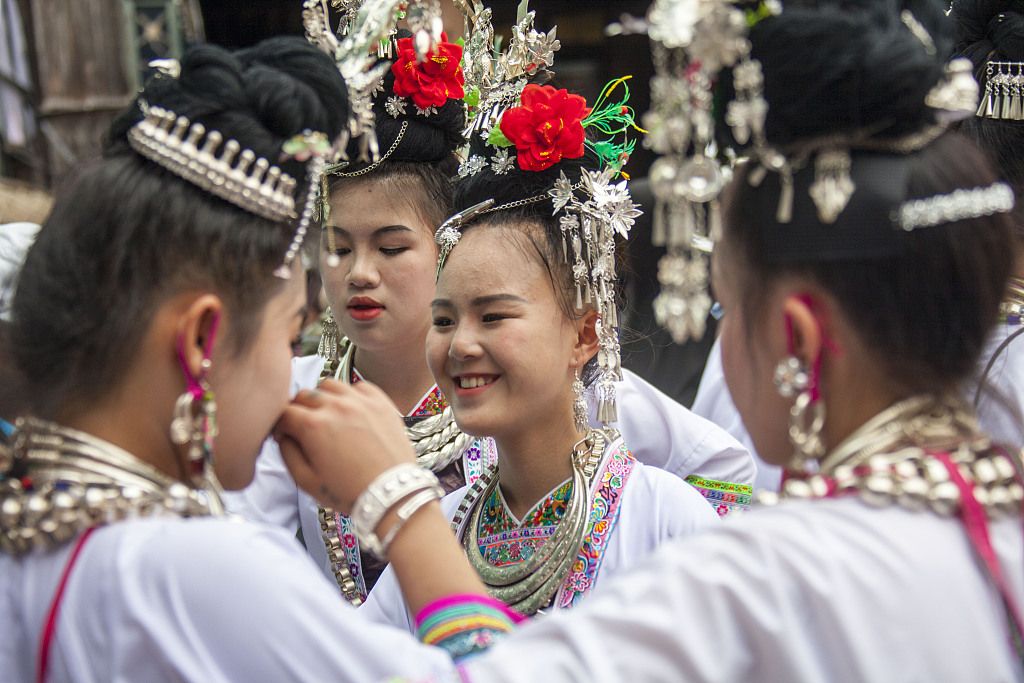 2024年4月19日,贵州黔东南州,黎平县肇兴侗寨拍摄的村歌大赛现场。当日是二十四节气的谷雨,人们在贵州省黔东南苗族侗族自治州黎平县肇兴侗寨“谷雨节”上观赏侗族非物质文化遗产“侗族大歌”比赛,体验一场别开生面的视觉盛宴。