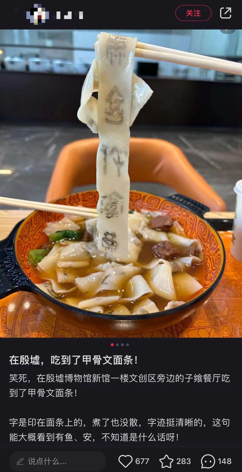 据了解,甲骨文面条