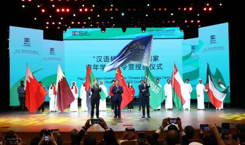 沙特、阿曼、阿联酋、卡塔尔、科威特、日本、越南、老挝等国驻华外交官,法语联盟、塞万提斯学院等国际语言文化机构代表,有关部委、高校、社会组织、媒体代表,以及“汉语桥”海合会国家青年学生春令营师生等300余人参加。