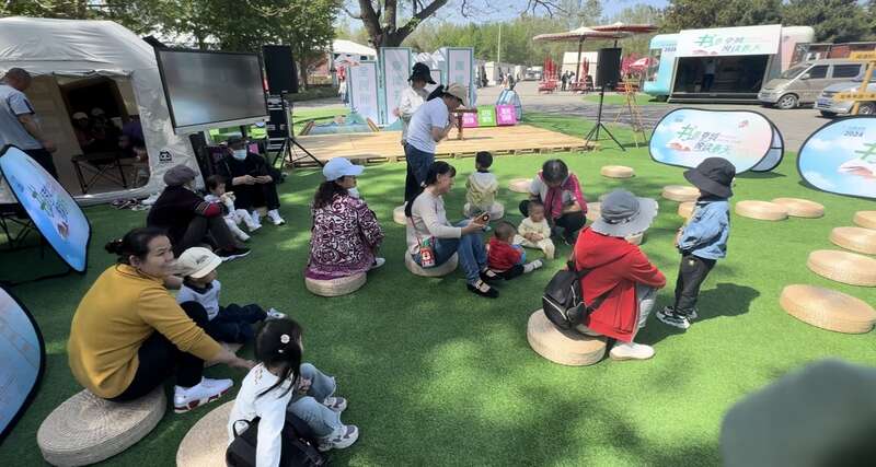 年轻化首先体现在“年轻人喜欢”。今年的全民阅读推广区紧跟当下爆火的户外潮流,打造成阅读与营地文化结合的场所,人们可以坐在草坪上参加书籍交流会、国潮音乐会等体验性活动。营地旁的房车化身移动式图书馆,装备有自助借阅设备和少儿图书书架,让家庭共享阅读乐趣。
