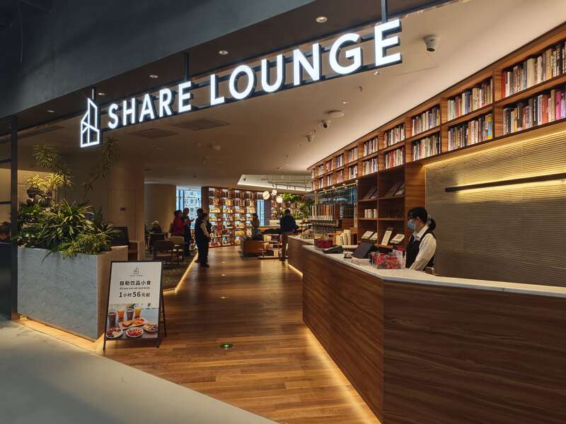 “SHARE LOUNGE ”是共享阅读休憩空间品牌,兼具共享办公、独立图书馆、休息、咖啡、下午茶等功能。在空间视野及光线体感最舒适的区域,除了有基于选书编辑思维推荐陈列的好书、各种生活文创产品好物,并提供丰富多样的知识创意展览活动外,也为读者与不同创业阶段的人提供能够激发更多灵感的线下空间。