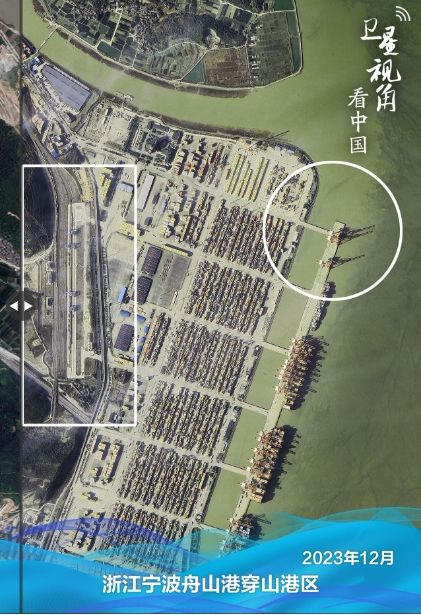 左右滑动看变化。浙江宁波舟山港穿山港区新建1个泊位及铁路穿山港站。