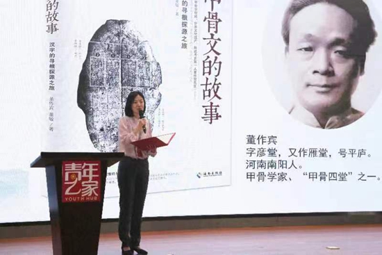 4月19日,“为中国式现代化挺膺担当——青春年少好读书”2024年主题读书季启动仪式上,荣慧分享了阅读《甲骨文的故事》一书的心得体会。