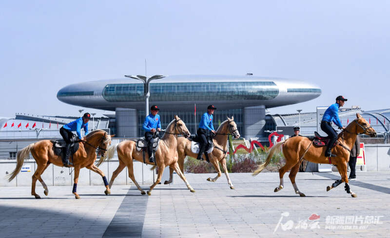 4月20日,“乌鲁木齐 马上旅游”2024年文化和旅游消费季正式启动。在乌鲁木齐市文化中心,几匹高大威猛的汗血宝马,在驯马师的指引下扬蹄舞蹈,鞠躬致意,绕场巡游……精彩的演出吸引了众多游客的目光,让大家近距离感受到了汗血宝马的魅力。这是一场马术表演,这些马来自新疆古生态园汗血马基地。