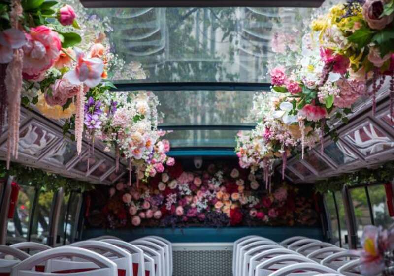 双层巴士“都市观光旅游2号线”也在花展期间变成了“花花巴士”,不仅车上喷涂了花卉,车厢里也是“鲜花盛开”。为了防止部分游客花粉过敏,主办方特意选择了月季、蝴蝶兰、玫瑰等仿真花来布置。这条线路除了常规路线外,还将特别推出“花展专线”,串联新天地-徐汇滨江-上海植物园等花展展区。