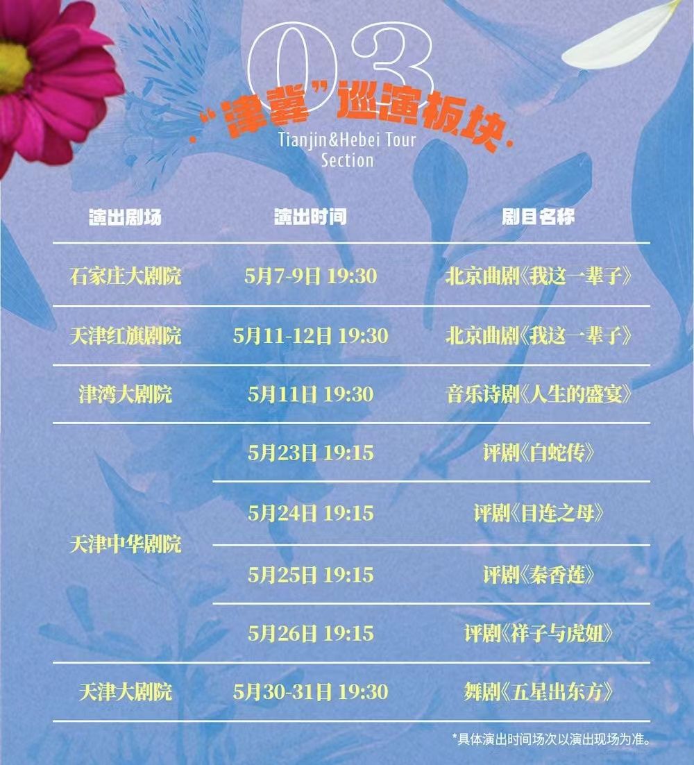 在“京津冀协同发展十周年”之际,五月演出季首次推出“京津冀”巡演板块,携多个文艺院团走进天津、河北,为当地观众演出包括舞剧《五星出东方》、评剧《白蛇传》、北京曲剧《我这一辈子》等在内的7部作品。