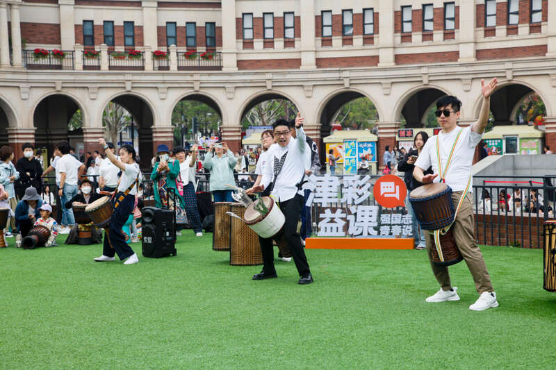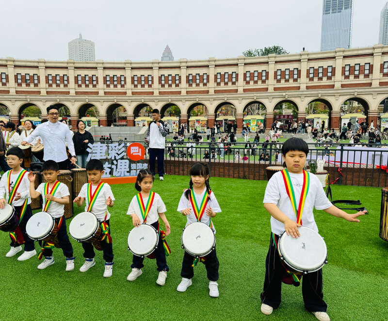 天津市青联委员现场进行了精彩的非洲鼓表演,并为现场近百名青少年及家长讲授非洲鼓入门打击技巧。大家围坐在一起,感受非洲鼓乐律动、体验非洲文化艺术,吸引了许多游客驻足聆听并主动参与。