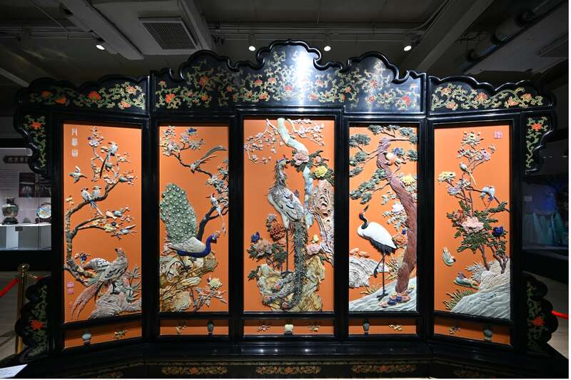 金漆镶嵌大型花鸟屏风《丹凤图》。活动方供图