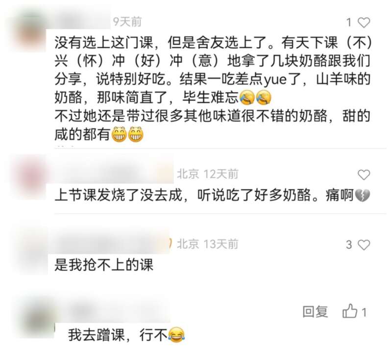 “当时想着可以吃奶酪,于是就选了这节课了,没想到其实不仅是吃奶酪,也在进一步了解奶酪科学与文化。”