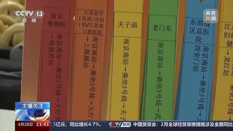 南京地铁客运分公司工作人员 张彤:我们汇集了全线各个车站,乘客问询比较多的目的地,然后制作成了这样的彩虹便签,用不同的颜色来区分目的地。