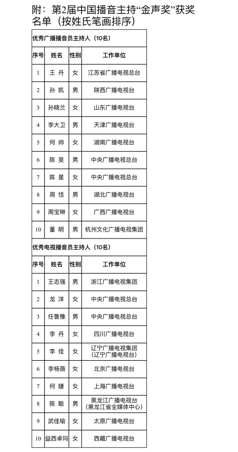 据介绍,这20位获奖者来自总台和15个省份,覆盖东中西部地区,包括西藏、广西等边疆民族地区和基层播出机构的播音员主持人。