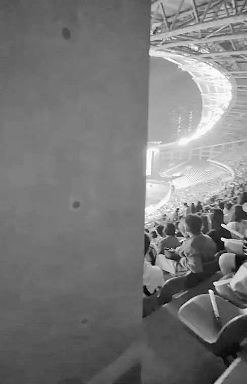 王女士到了演唱会现场才发现,自己的座位前有一根巨大的水泥石柱,“什么都看不见,别说看舞台了,连内场都看不见。”