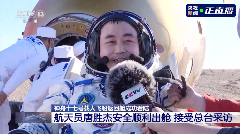 刚刚,神舟十七号航天员汤洪波、唐胜杰、江新林全部安全顺利出舱,健康状态良好。