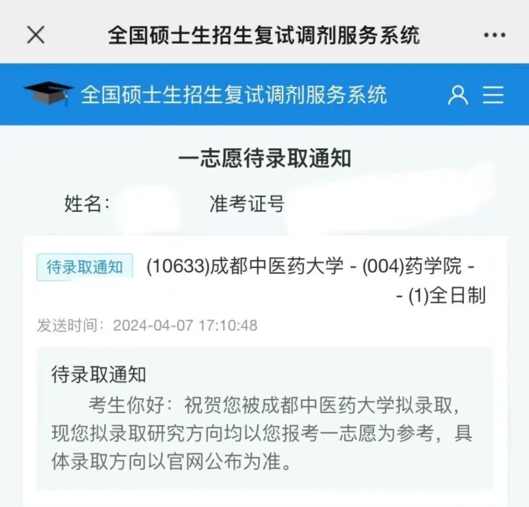 成都中医药大学拟录取的通知