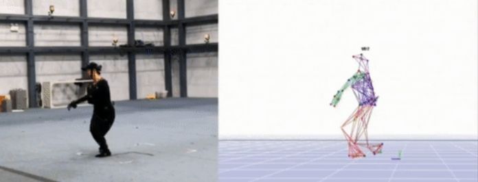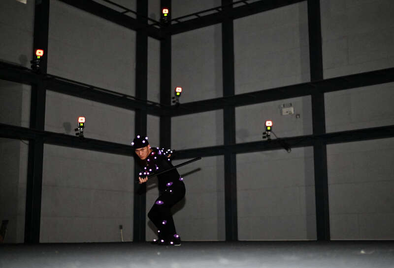 身着特定装备的动捕演员马鑫琪正在中心表演
