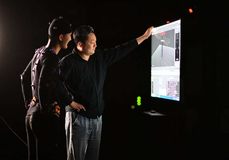 国家动漫园公共技术服务平台动捕棚的技术顾问崔盛辑介绍道