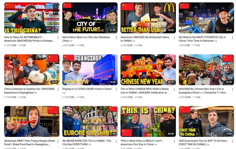 但这毫无疑问都是博主收割流量的手段,实际上,视频里的内容无一例外,都在说中国和他们想象中截然不同,基本上都是正面信息。