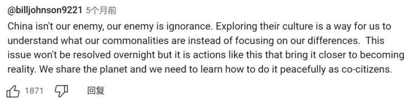 中国不是我们的敌人,我们的敌人是无知。探索他们的文化能够让我们了解双方的共同之处,而不是死磕那些分歧。这不是一蹴而就能解决的问题,但正是因为有像博主这样的分享,理想才能离现实更进一步。我们同住一个地球,我们要学会如何和平相处。