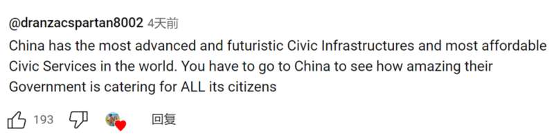 中国有着世界上最先进和未来化的公共设施、最平价的公共服务。你们一定要去中国看看他们的政府是怎么服务所有公民的,令人惊叹。