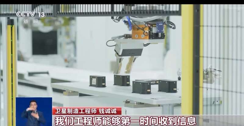 卫星制造工程师 钱诚诚:我们这条智能化的脉动生产线,通过改造不同的接口,能够同时实现10公斤小卫星以及1000公斤大卫星的并行生产,以这种工业化、标准化、自动化的流程,我们能够快速地实现卫星量产。