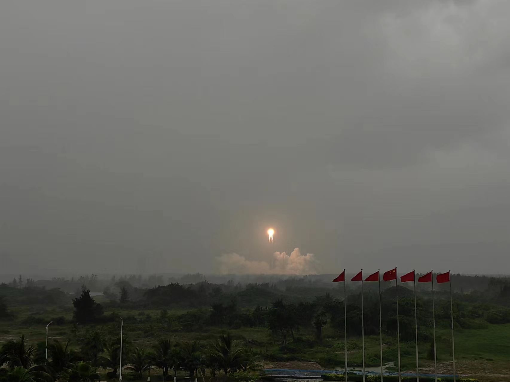 5月3日,中国文昌航天发射场,长征五号遥八运载火箭点火起飞。中青报·中青网记者 邱晨辉/摄