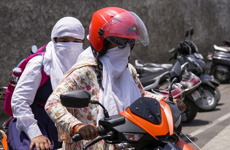 当地时间2024年5月2日,印度安拉阿巴德,拉贾斯坦邦妇女在炎热的夏天从恒河附近的公共水龙头喝水。