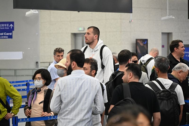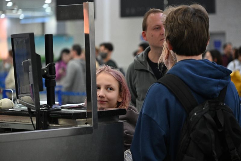 2024年5月3日,上海浦东国际机场,外籍游客正在排队办理出入境手续。五一小长假期间,上海浦东、虹桥两大空港口岸陆续迎来出入境双向客流高峰。据上海边检机关统计,假期前三天(5月1日至3日17时),在上海空港口岸,上海边检机关累计查验出入境人员24.1万人次,其中,出境13.7万人次,入境10.4万人次。