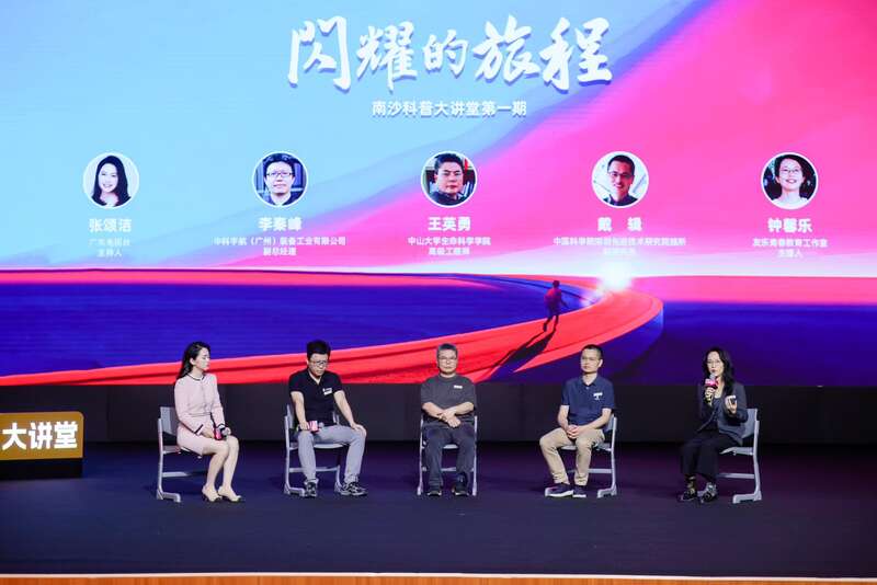 南沙科普大讲堂首期活动,邀请到中科宇航(广州)装备工业有限公司副总经理李秦峰、中山大学生命科学学院高级工程师王英勇、中国科学院深圳先进技术研究院脑所副研究员戴辑、友乐青春教育工作室主理人钟馨乐,分享他们在大湾区造火箭、发现两栖动物新物种、找到帕金森病精准治疗方法、为反对校园欺凌发声的4段经历,现场展开跨界交流。
