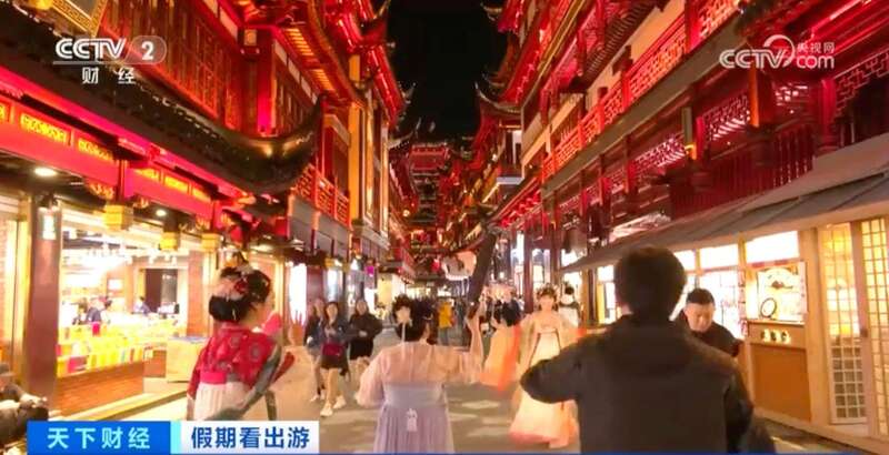 在上海,除了参观外滩、上海中心等热门景点,一些特色的文化体验也受到外国游客欢迎。走在夜晚的豫园景区,时不时能看到身着汉服等中国传统服饰的游客,其中也有一些外国面孔。